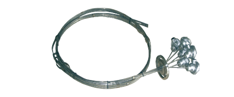 柔性熱電偶鎧裝采用高鎳合金拉制,并經特殊工藝制造,使得鎧裝比傳統鎧裝柔軟許多,但不會降低它的性能,更易折彎,可插入多次折彎的套管或在反應器內部根據要求打彎,可滿足各種反應器內部測溫的安裝使用。柔性鎧裝內可以是單點或單支多點結構。